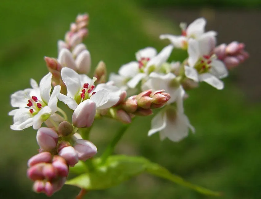 Для получения крупы плоды освобождают от этих несъедобных оболочек обрушивают на специальных мельницах. Семена гречихи прорастают при температуре +14, +15С*, дружные всходы гречихи появляются при температуре +20С* на 7-й день. После появления всходов растения гречихи быстро наращивают листовую массу затеняя поверхность почвы, препятствуя тем самым прорастанию семян сорных растений. Кроме того, корневая система гречихи ингибирует развитие сорняков выделением в почву веществ называемых биогербицидами, которые тормозят на некоторое время развитие сорняков. Всходы гречихи гибнут при температуре + 2С* поэтому гречиху сеют поздно, начиная с начала мая заканчивая 5-ым августа.