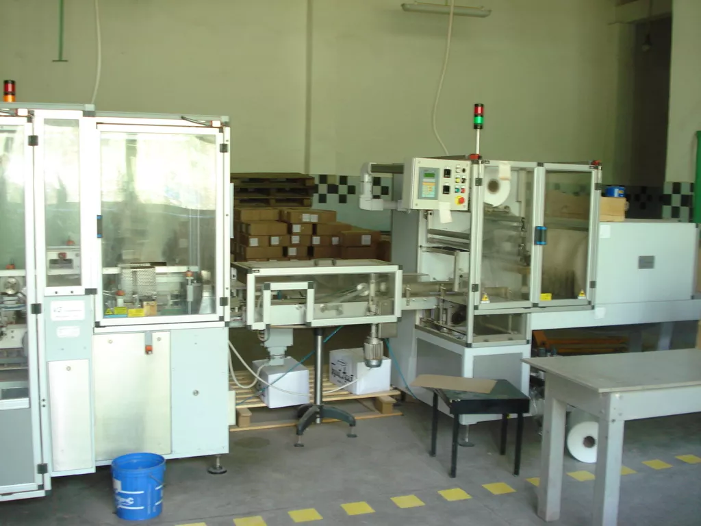 Технологическая линия по расфасовке сухих порошкообразных продуктов (молотый кофе, растворимые кофейные смеси, суповые концентраты, кисели, пищевые добавки, сухое молоко, специи, приправы ) и т.д. в разовые пакеты и их автоматической укладке в картонные коробки и группирование в блоки в термоусадочную плёнку. Скорость работы упаковочной линии 50 коробочек в минуту по 8 пакетиков (параметр перенастраивается). Например: при фасовке кофейной смеси по 20 гр в пакет, линия за смену 8 часов, упакует 1700 кг. продукта. Обслуживается 1 оператором. Данный комплекс оборудования заменяет 25-30 человек фасовщиков. Линия рассчитана на круглосуточную работу и большие заказы. В состав линии входят: